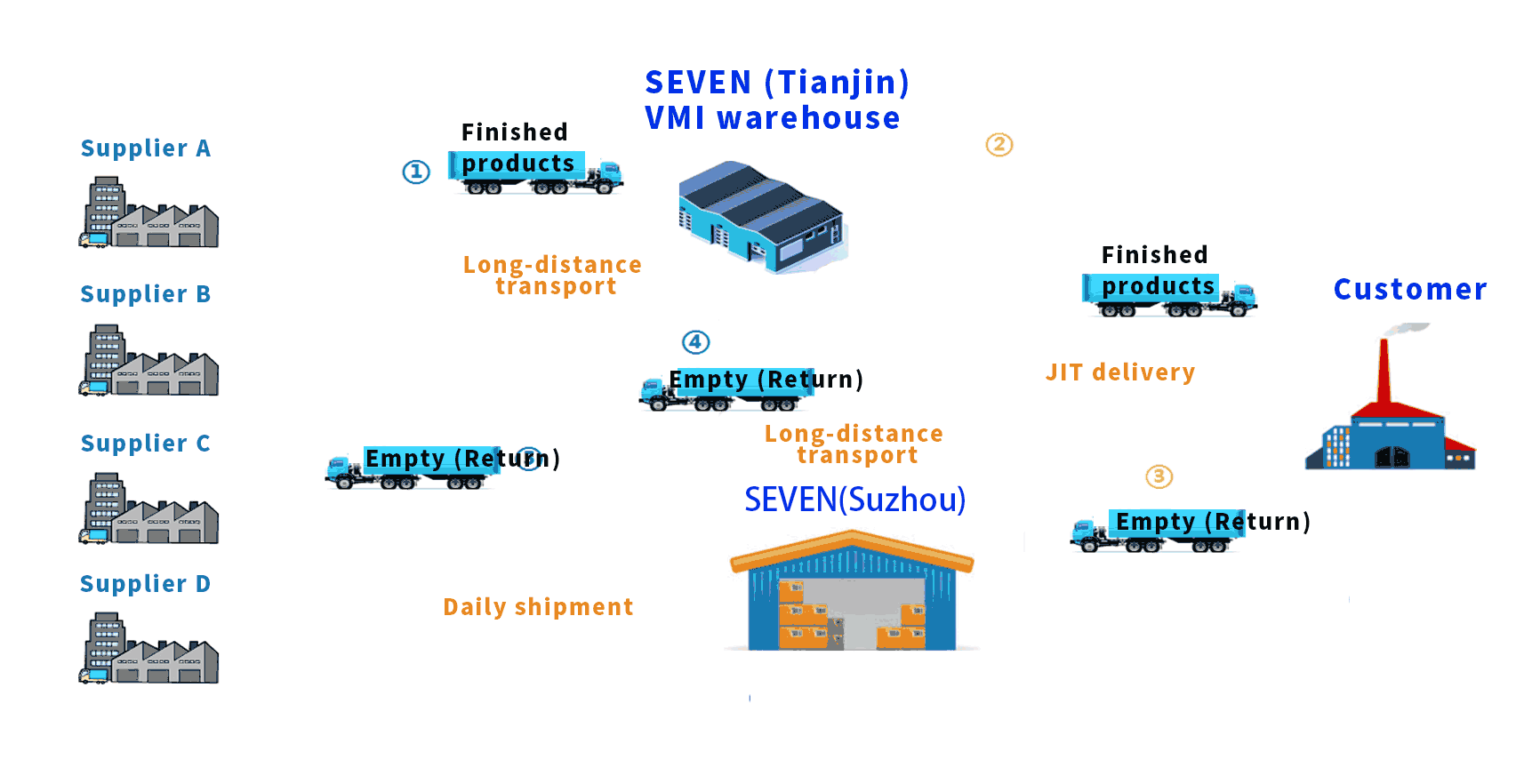 SEVEN provides global customers with professional and efficient Tail Spent Management services, helping customers in solving their problems in multi-party procurement. Our customer service sector that is responsible for receiving orders will also be responsible to break down the customer order and then place them with our service suppliers. Further, based on the customer needs, we will collect all products from the suppliers and have them stored in the SEVEN warehouses, while in the meantime, we make arrangements for the professional logistics sector to deliver them to the customer site. With Tail Spent Management service, the customer can reduce the number of suppliers to only one supplier which is SEVEN. This helps, on one hand, to relieve the work load and to reduce the warehousing costs of our customers, while on the other hand, this benefits the customer with improved responsiveness and reduced overall costs.